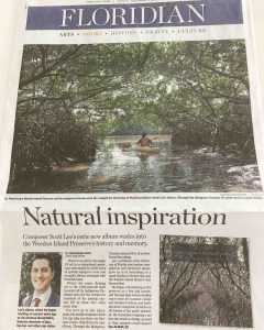 News | December 6, 2020Appearing as the cover of Sunday’s Floridian section, the feature article delves into the inspiration behind Scott Lee’s album Through the Mangrove Tunnels, which was released on November 13th. Christopher Spata calls the album’s title track “ethereal,” evoking “a sense of gliding over the water beneath the arching mangrove canopy.” He remarks that the “epic” Ballad of Willie Cole “has a wide, narrative scope with moments of chaos, intense unease and sorrow.”